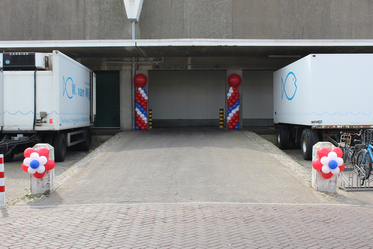 Om de visafslag op te laten vallen vroeg Rousel productions of er ballondecoratie neergezet kon worden door middel van een paar grote pilaren.