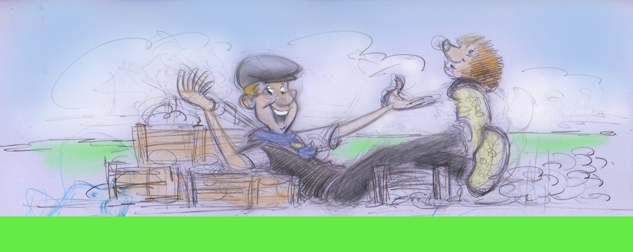 De cartoon van de Haagse ballonnenboer en Stekeltje in de begin fase.